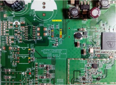 To enable uart mode, short pins at boot_sel2 (shortcut R80 pins, picture above) and connect boot_sel0 to 3.3V(Connect left R65 pin to serial port vcc on the motherboard from below), see picture above.
